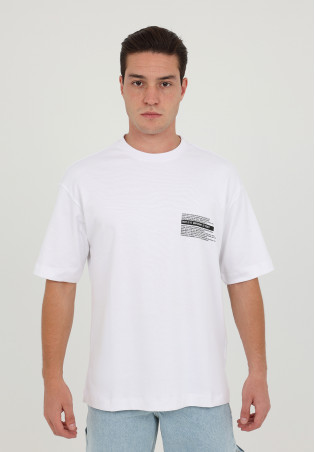 31,50 TND 44,99 TNDT-shirt homme coloris blanc, confectionné en coton doux et respirant. Coupe loose fit et confortable avec col rond classique et manches courtes. Le modèle se distingue par une patch silicone fixée par couture sur la poitrine, apportant une touche discrète et moderne. disponible en blanc et noir