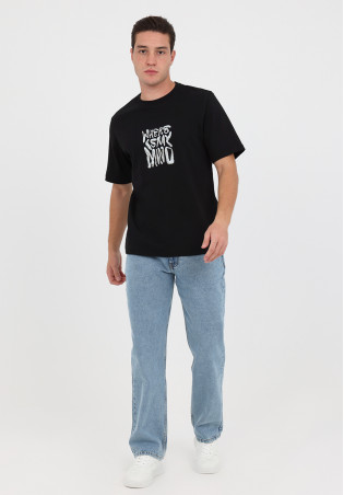 29,99 TND 39,99 TNDCe t-shirt en coton mélangé noir à col rond et manches courtes allie confort et simplicité. Sa coupe comfort fit, droite et équilibrée, offre une grande aisance sans être trop large. Détail original : un petit ticket blanc tissé au centre de la poitrine affiche le chiffre "856" en feutre, ajoutant une touche graphique subtile à ce basique du quotidien.