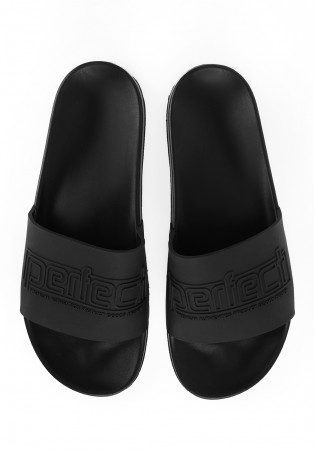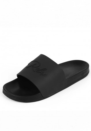 Claquettes noires au design épuré et moderne, dotées d’une tige pleine en matière synthétique douce et mate. L’intérieur de la semelle est texturé avec les mots "TO" et "REAT" en relief pour plus de style. Légères, confortables et faciles à enfiler, elles sont idéales pour un usage quotidien ou en détente à la maison.