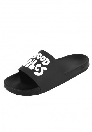 Claquettes confortables noires avec semelle souple et inscription contrastée "Stay Good". Leur design décontracté et moderne en fait un choix parfait pour la maison ou les sorties estivales. Légères et faciles à enfiler, elles combinent praticité et style, tout en offrant un confort agréable au quotidien.