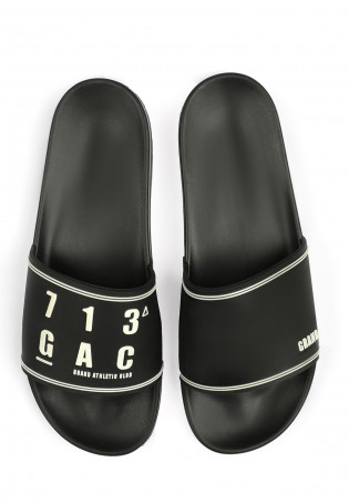 Ces claquettes noires au design moderne allient confort et style sportif. Dotées d’une large bride ornée d’inscriptions contrastées “713 GAC” et “Grand Athletic Club”, elles offrent un look dynamique et tendance. La semelle ergonomique garantit un port agréable au quotidien, que ce soit à la maison, en bord de piscine ou pour compléter une tenue décontractée. Un must-have pratique et urbain.