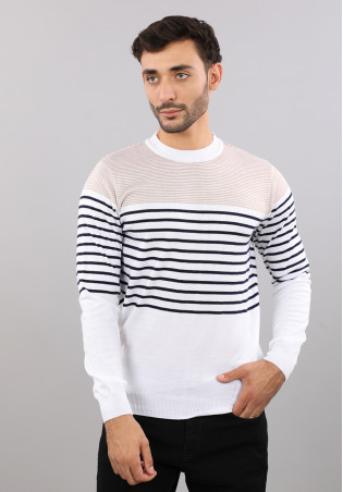 Le pull-over en maille fine avec rayures est l'incarnation parfaite de l'élégance décontractée. Sa coupe confort fit, associée à un col rond classique, crée une silhouette à la fois moderne et intemporelle. Les finitions soignées en côte de maille ajoutent beaucoup d'esthétique et de raffinement au vêtement, en assurant une tenue impeccable tout au long de la journée.