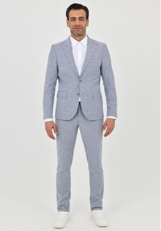 Ce costume complet bleu jean séduit par son style moderne et épuré, idéal pour un look chic et contemporain. Confectionné dans un tissu à la texture fine et confortable, il offre une coupe slim fit qui met élégamment la silhouette en valeur. La veste à fermeture deux boutons, poches à rabat et col classique s’associe parfaitement au pantalon ajusté, doté de poches latérales et arrière discrètes.