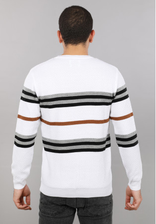 Ce pullover homme est un essentiel d'hiver à avoir dans sa garde-robe. Il est confectionné en maille fine texturé , douce et agréable à porter. Ses raures en bleu et en blanc lui donnent un style moderne et élégant. Sa coupe confort fit offre une bonne aisance de mouvement, juste comme il faut. Il possède des manches longues et un col rond et des poignets côtelés.