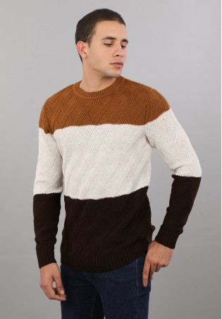Ce pullover pour homme en maille torsadée est un essentiel hivernal qui ajoute instantanément une touche authentique à votre style avant-gardiste. Sa maille douce offre une expérience de port agréable, tandis que les lignes diagonales ajoutent une dimension visuelle intéressante. La coupe confort fit assure une silhouette élégante, et le choix de couleurs en blocs marron, beige et camel.