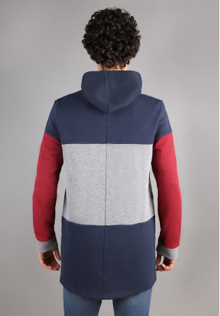 Gilet homme à capuche au style moderne et urbain, conçue dans un élégant jeu de couleurs bleu marine, gris et bordeaux. Dotée d’une fermeture zippée renforcée par des brandebourgs décoratifs, elle allie praticité et originalité. Coupe confortable, poches frontales fonctionnelles et finitions soignées pour un look tendance au quotidien.