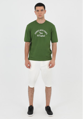 Ce t-shirt homme vert, en coton mélangé, allie douceur et respirabilité pour un confort optimal au quotidien. Sa coupe confort fit offre une aisance naturelle, idéale pour un look décontracté. Le modèle se distingue par son imprimé blanc "STORIES NEED FONTS Team Of England" sur le devant, apportant une touche graphique et moderne. Un essentiel facile à associer à vos tenues casual.